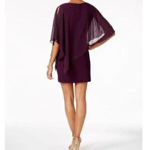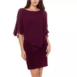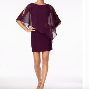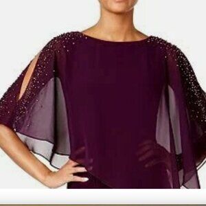 X By Xscape Chiffon Capelet Sheath Plum Dress NWT