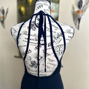 X ByXScape navy blue with sequins halter top gown with openback high slit on side sz4 .