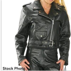 X Element Women's Motorcycle Cropped Black Leather Jacket Size Large