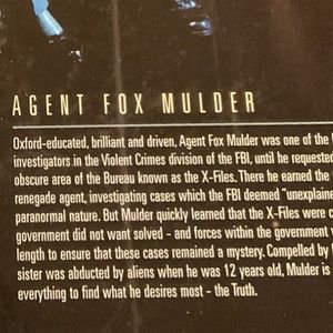 New in sealed package X Files Agent Mulder in Fight The Future in the TV series X-Files, agent Mulder was the leading investigators in the violet crimes unit of the FBI.This is Series 1. Good Condition to be 23 years old.