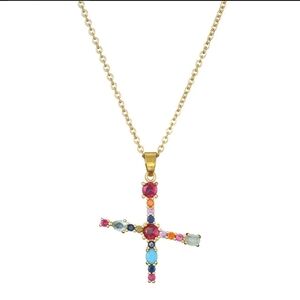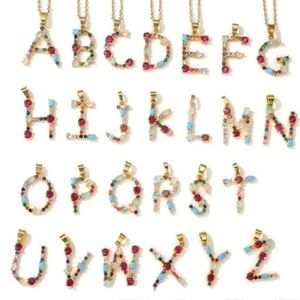 X Initial Pendant Necklace Multi-color Rhinestones Gold Tone Chain
