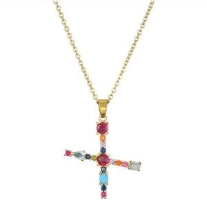 X Initial Pendant Necklace Rhinestone Gold Tone Chain