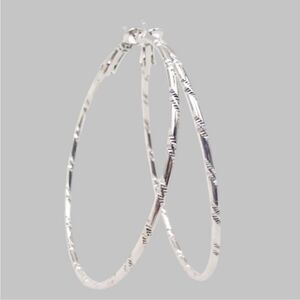 X Large Silver Diamond Cut Hoop Earrings NEW