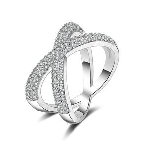 X Shape Cross Micro Pave CZ Crystal Infinity Rings for Women, PD432