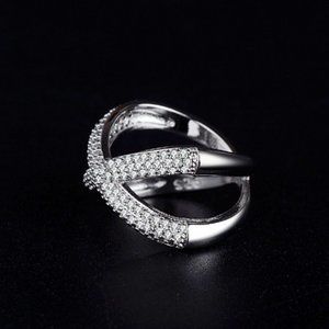 X Shape Cross Micro Pave CZ Crystal Infinity Rings for Women, PD432