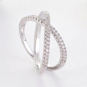 💞 X Shape Manufactures Two Lines Cross Zircon Ring for Women, PD125