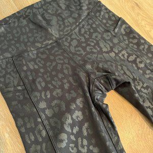 workout leggings, athletic leggings, crop leggings, 7/8 leggings, ankle leggings, embossed leggings, leopard print leggings, black leggings, animal print, embossed, leopard, cheetah