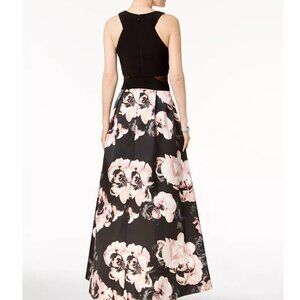 X by Xscape Black Pink Floral Print Halter High Low Dress Mesh Cutout 12 #8315