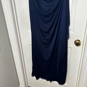 X by Xscape Stand-collar Illusion Back Gown Evening Women 14 Navy Built in Bra