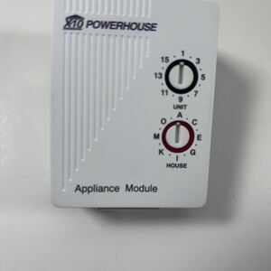 This X10 Powerhouse AM466 Appliance Module allows remote control of appliances via X10 signals. Perfect for integrating lamps, fans, or other devices into your home automation system. Features Unit and House Code dials for easy setup.