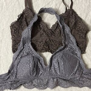 Aerie Lace Bralette Set size XS Two bralettes One gray One brown