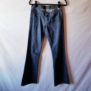 TAGS: flare leg jeans, used flare leg jeans, flare jeans, used flare jeans, dark wash jeans, used dark wash jeans, low rise jeans, used low rise jeans
