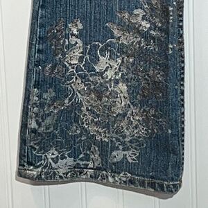 X2 Denim NWOT Flare Jeans With Distressing &Foil And Stone Design Size 4 Regular