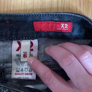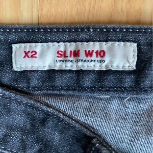 X2 Low Rise straight leg jeans with a dark wash. Size 6 with 8 inch rise, 30” waist’ and 31.5” inseam. In excellent condition.