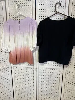 X2 Universal Thread cotton gauze tops 1 lavender to rust ombre with back button and 1 black v-neck with cuffed sleeves ๐๐ค๐๐ค both size M.