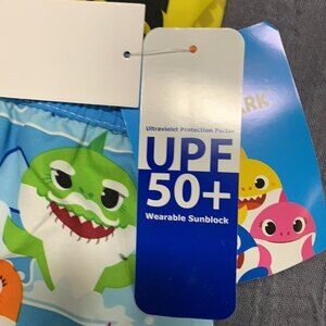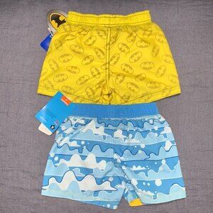 X2 swimming trunks with mesh for 12 mo. 1 is DC comics Batman and 1 Nickelodeon baby shark. Both are new with tags. SPF 50.