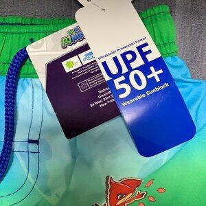 X2 swimming trunks size 2T both with mesh. The pj mask draw string is completely functional. Both SPF 50.