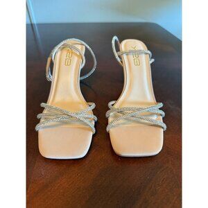 X2B Dovie-6 Nude Strappy Rhinestone Sandals Heels Size 5.5