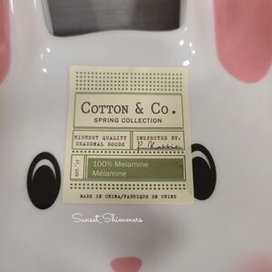 Here we have a Adorable set of 4, New with sticker tags, Bunny rabbit melamine Salad/ Appetizer/Dessert plates. Dishwasher safe, not microwavable. Measures approx. 7"x10" Sooooooo Cute!!!