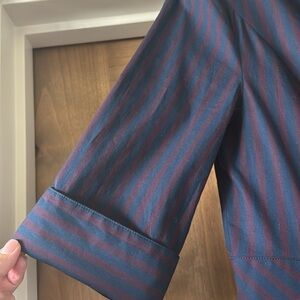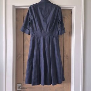 XANDER Midi Shirt Dress Womens 10 Navy/Maroon Pleated skirt Cotton Preppy Retro