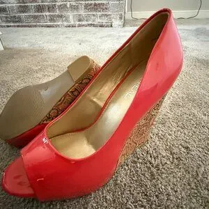 New, Never Worn! Color: Coral Size:: 6 Patent, Peep-Toe Wedge Heel Comfortable