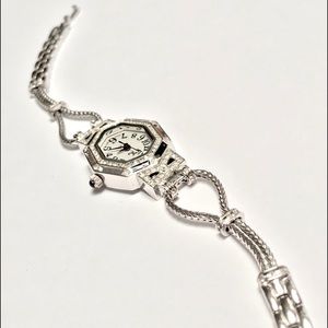 Silver Tone Watch With Black Enamel Face