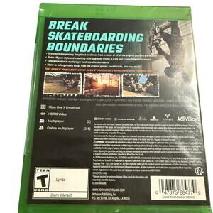 XBox One Tony Hawk's Pro Skater 1 & 2, New In Package. Get ready to experience the ultimate skateboarding game. Features Tony Hawk and his crew performing daring stunts and tricks in different locations. Rated T-Teen and part of the XBox video game series. New in packaging, compatible with Microsoft XBox One.