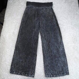 XCVI By Mind Set Black/Gray Acid Wash Wide Leg Pant. No stains or holes. Knit stretchy waistband. Pants feel like a soft woven like feel.