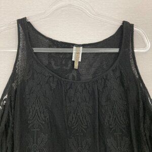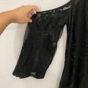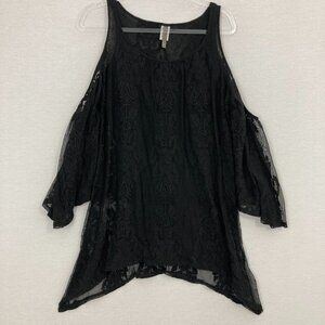 XCVI Black Mesh Lace Cold Shoulder Shark Bite Hem Boho Top Medium Whimsigoth