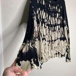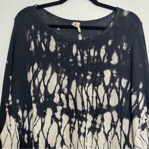XCVI Blue + Cream Tie Die Mesh Fishnet Lagenlook Sweater Medium