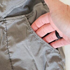Stylish gray pants with ruffle details. Comfortable fit. Perfect for casual wear.