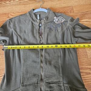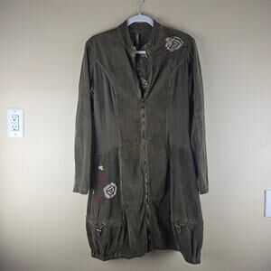 XCVI Green Embroidered Floral Long Full Zip Jacket Size Small