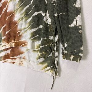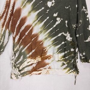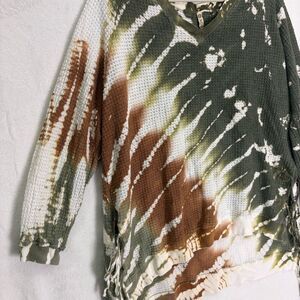 Excellent pre-owned condition XCVI Green, White, and Brown Tie Dye Waffle Knit V Neck Pullover Sweatshirt Size XL P