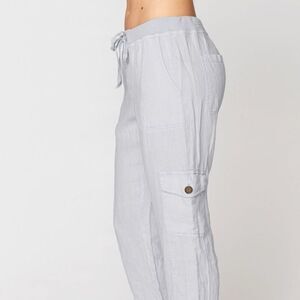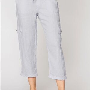 XCVI Lite Linen Women’s stretch Drawstring Soft Gray Crop Pants PatchPockets NWT