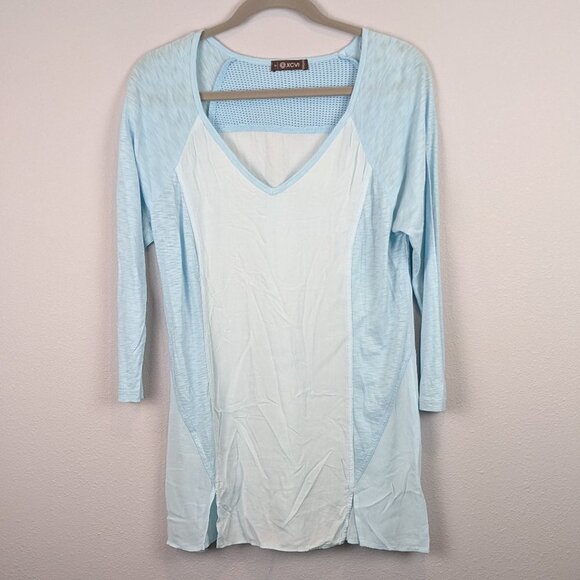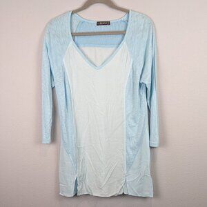 XCVI Mesh Blue Tunic Cotton Blouse 3/4 sleeve Size Small