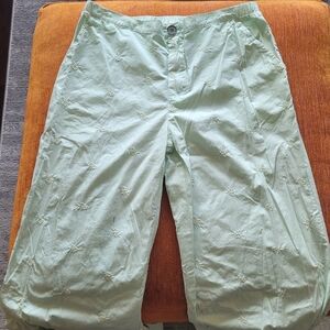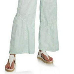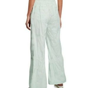 Brand new with tags tiered pants with subtle white little flower embroidery & ruching detail. 2 front side pockets and 2 back pockets. Wide leg fit, full length, button zip fly.