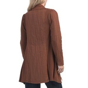 quilted design, baby ribbed panels, 2 front pockets, fabric provides stretch