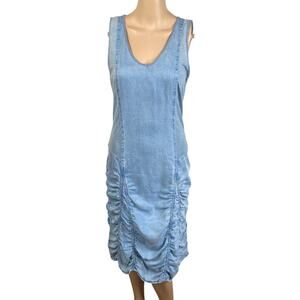 XCVI Raymond Orion Blue Chambray Lagenlook Ruched Sheath Dress SZ S