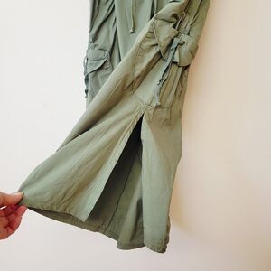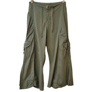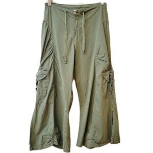 XCVI Ruffled Cargo Capri Green Wide-Leg Pants Side Slits Women Size XS