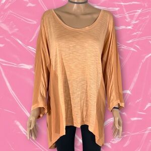 XCVI Scoop Neck Flowy Blouse Top With Sheer Back - In Peach / Orange