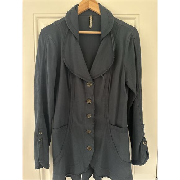 XCVI Stayton Blue Blazer Medium Raw Hem Y2K Boho Casual Lagenlook Whimsigoth M