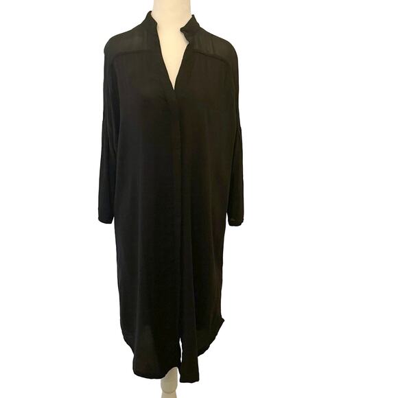 XCVI Tunic Shirtdress Small Black Sheer Minimalist Coverup Oversized Rayon