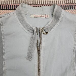 XCVI Wearables Full Zip Jacket Sz M Taupe Green Gray Mixed Media Zip Sides Artsy