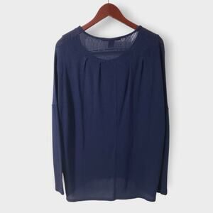 XCVI Wearables Marissa Mesh Open Knit Top Navy Blue Sz XS Lounge Lagen Grunge