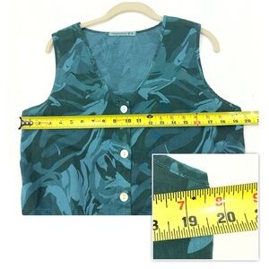 XCVI Wearables Minerva Tank Top Womens Size M Linen Blend Teal Blue Tie Button