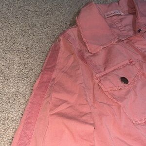 XCVI Wearables Raw Edge Poplin Lightweight Safari Jacket Bellini Pink Small