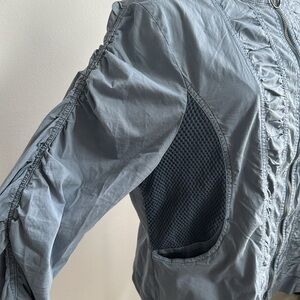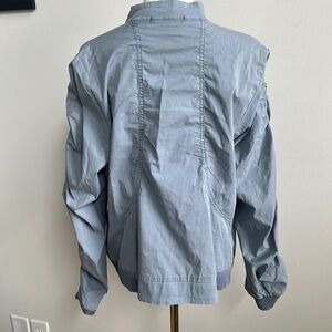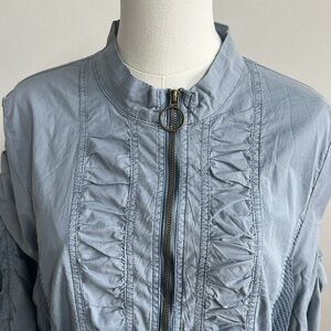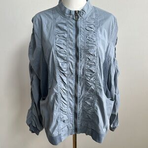 XCVI Wearables Women’s Orrick Edgy Feminine Zip Up Mesh Bomber Jacket Blue 1X
