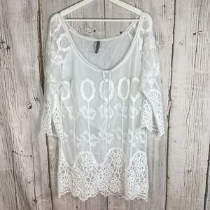 XCVI White Lace Floral Top Coverup Size M NWOT 23