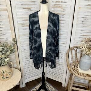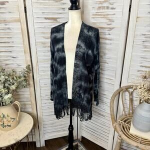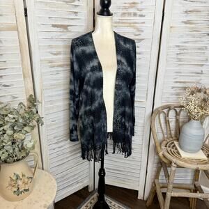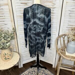 - XCVI Women's L Cotton Fringe Open Crochet Knit Cardigan Sweater Bleached Tie Dye -