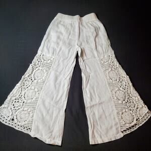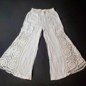 XCVI Women's Size M Linen Wide-Leg Pants Crochet Lace White